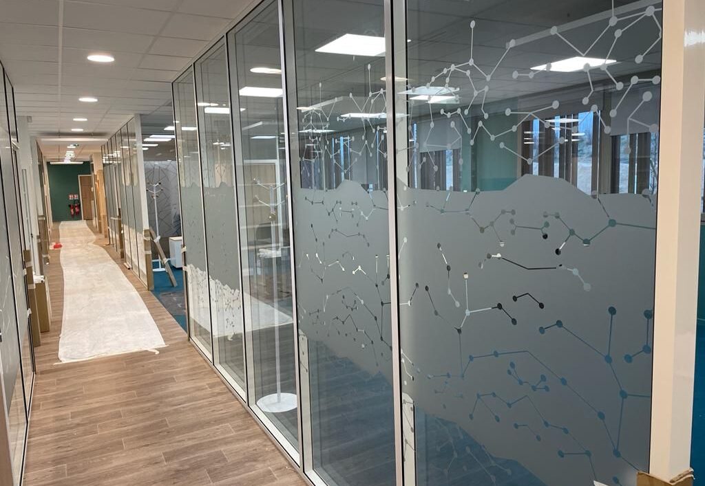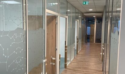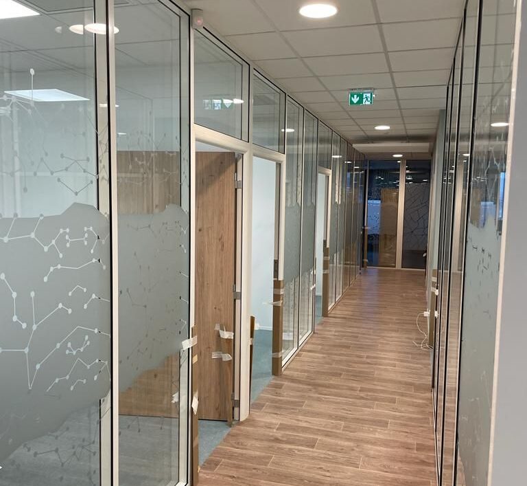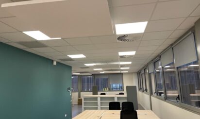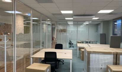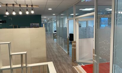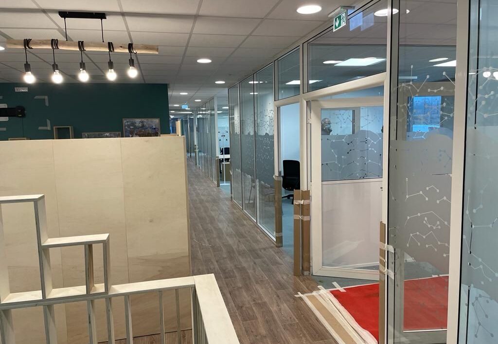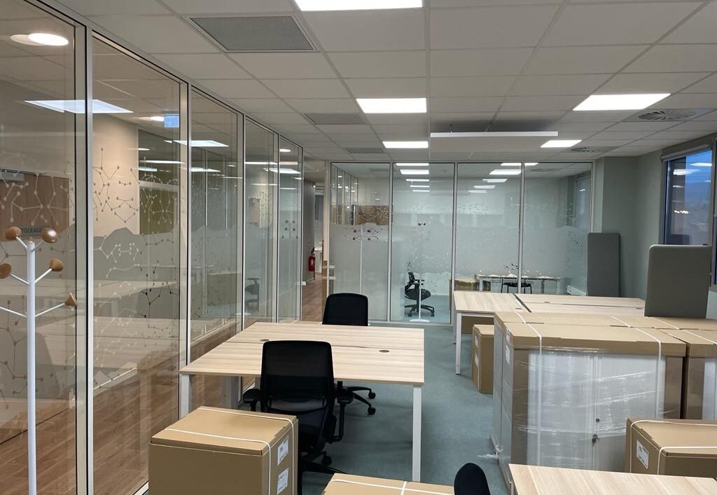 Chantier ENEDIS 2500 m2 de bureaux à Appoigny : Plâtrerie, Faux plafond, Plancher technique, Cloisons Modulaires.