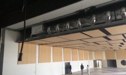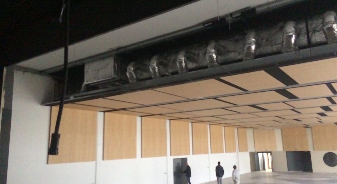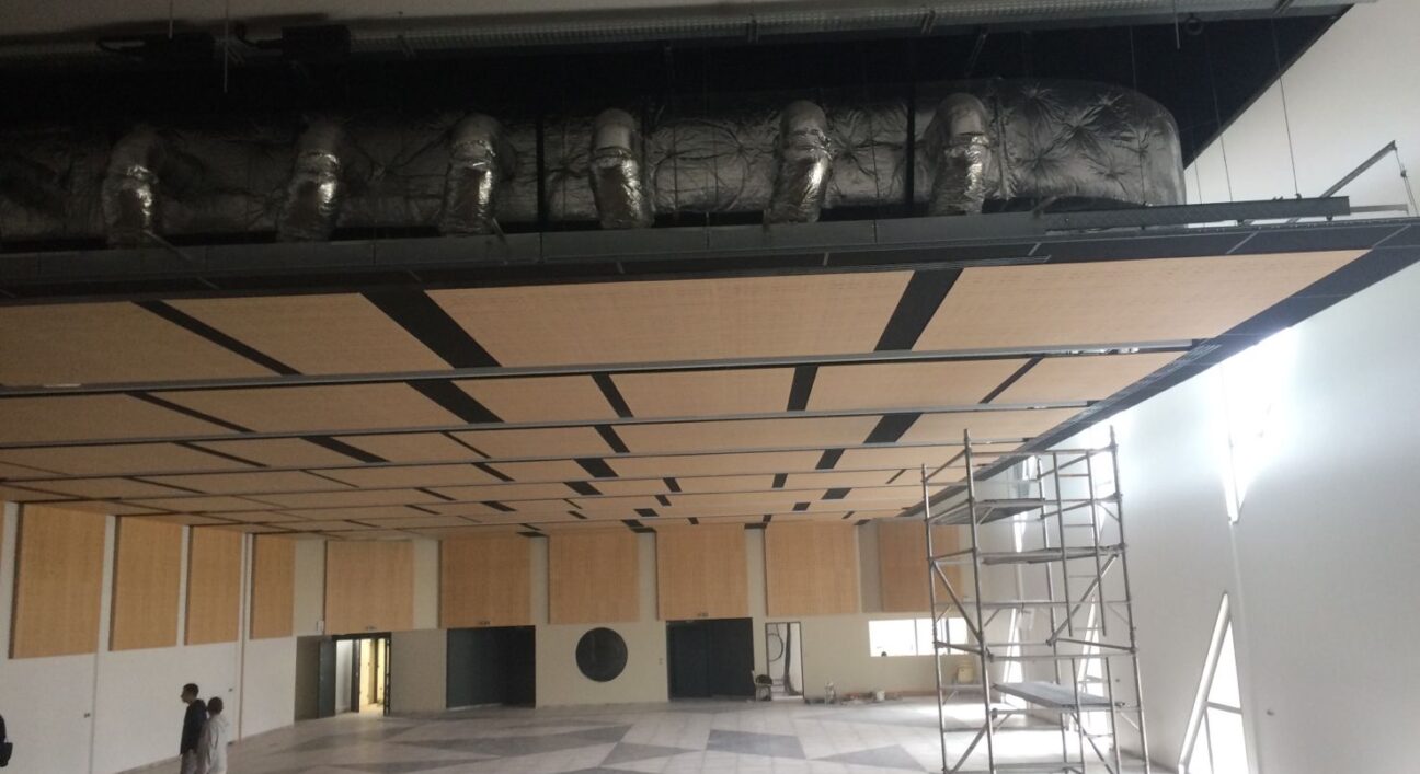 Salle des fêtes Théodore Gérard à DECIZE. Traitement acoustique panneaux bois OBERFLEX plafond et murs.